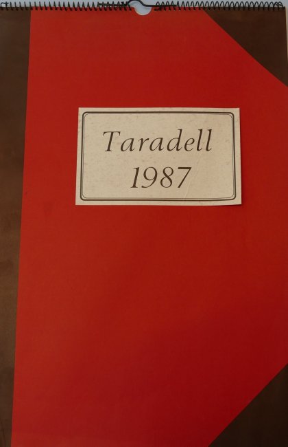 Dues fotografies del mateix indret de Taradell per observar l'efecte del pas del temps. Així, en el calendari del 1987 apareixen vistes de l'Ajuntament, del carrer de la Vila, la Plaça de Santa Llúcia, la plaça de les Eres, la carretera de Balenyà... En aquesta segona edició, l'equip de treball també va afegir els sants dels taradellencs mentre que van mantenir i augmentar un recull de dites populars. En aquest calendari hi trobem també una fotografia dels encarregats de fer el calendari de quan eren petits.