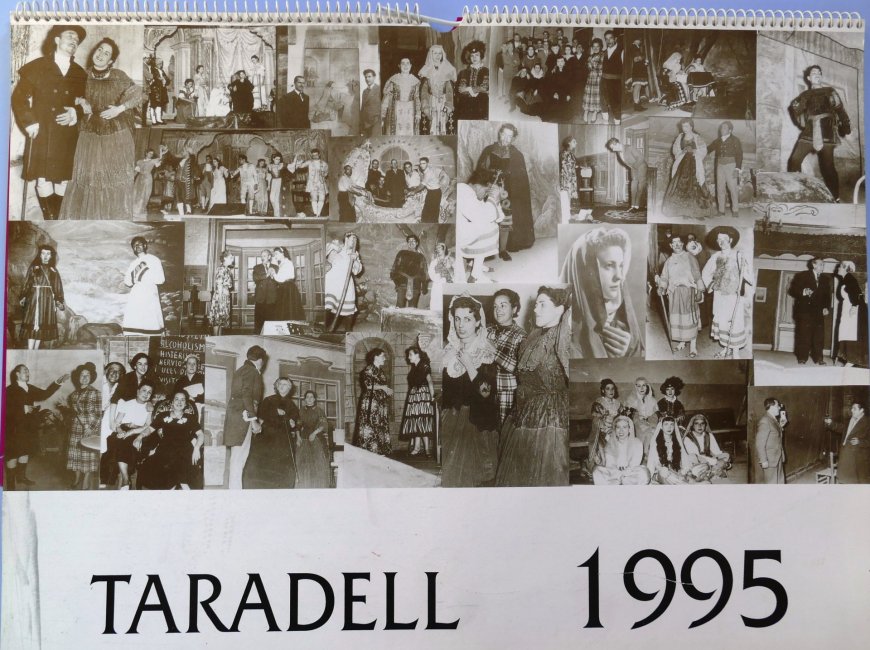 El calendari del 1995 es va dedicar al teatre a Taradell. Hi trobem fotografies dels edificis de Taradell on l'art teatral n'ha estat testimoni com el Casino, el Centre Catòlic o el Maricel, però també imatges de grups d'actors i d'actrius i de representacions d'obres amb l'objectiu de recuperar els més de 100 anys d'història (1879) del teatre al municipi. Acompanyen a les fotografies un text explicatiu elaborat per Mn. Josep Baucells i Reig.
