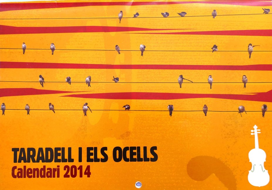 'Taradell i els ocells' és el nom que portava el calendari del 2014 i en el qual s'hi podien trobar L'aguilot, el lluer, el passerell, la cotxa, el bruel o reietó, el merlot, la puput, el cucut, la perdiu, la cadernera, el pinsà i el duc. Totes les fotografies van acompanyades d'un petit poema o cançó i al final hi ha una explicació de la nadala catalana El cant dels ocells. A la contraportada, trobem fotografies més petites de l'abellerol, el tord, el voltor, l'estornell, l'0oreneta, el corb marí gros i el tudó.