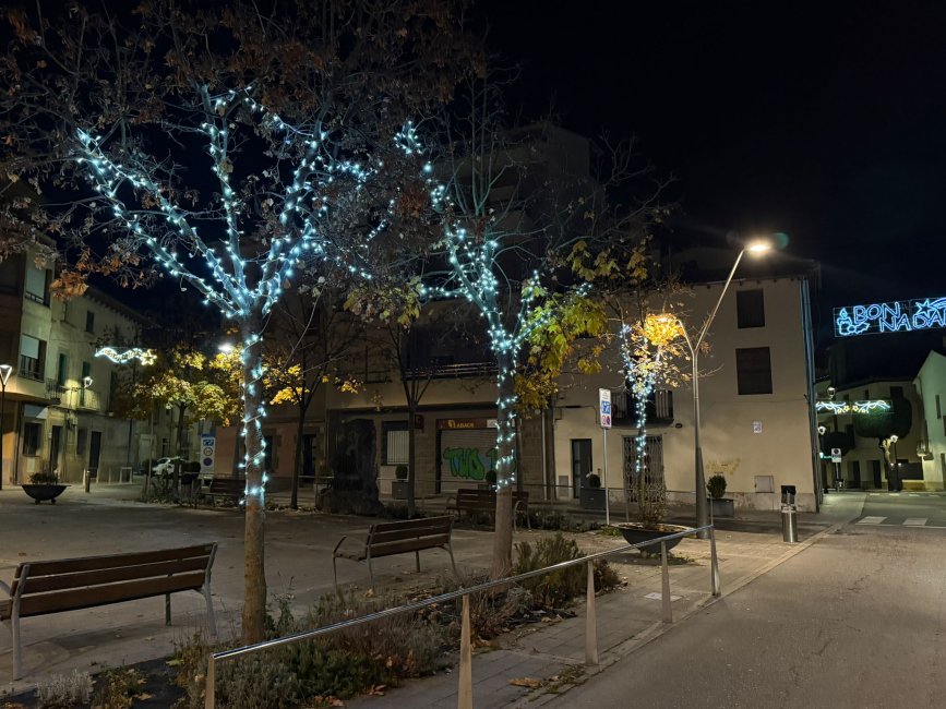 L'arbre de la plaça de les Eres torna a lluir estrelles i la mateixa plaça estrena nous llums a l'espera de rebre els Reis d'Orient. També es mantenen les tires penjants als espais habituals, com la plaça de Santa Llúcia i la plaça del Gili. Altres punts, com el passatge de les Monges o els arbres de l'eix comercial, també han estat engalanats.