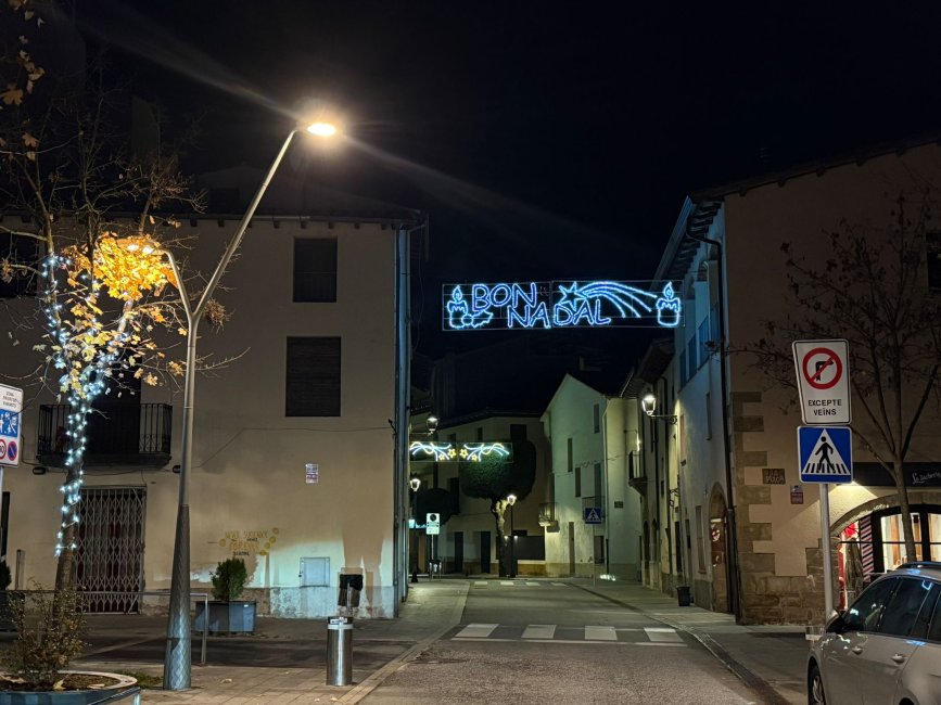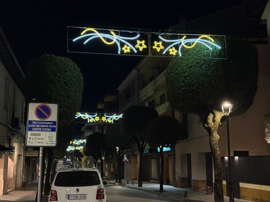 A 2/4 de 6 de la tarda s'han encès les llums nadalenques, que aquest any presenten un disseny renovat amb estrelles grogues i cintes blanques i daurades a l'eix comercial: el passeig Domènec Sert, la carretera de Balenyà i la carretera de Mont-rodon. A les entrades d'aquest eix, també s'hi mantenen els tradicionals arcs lluminosos de “Bon Nadal”.