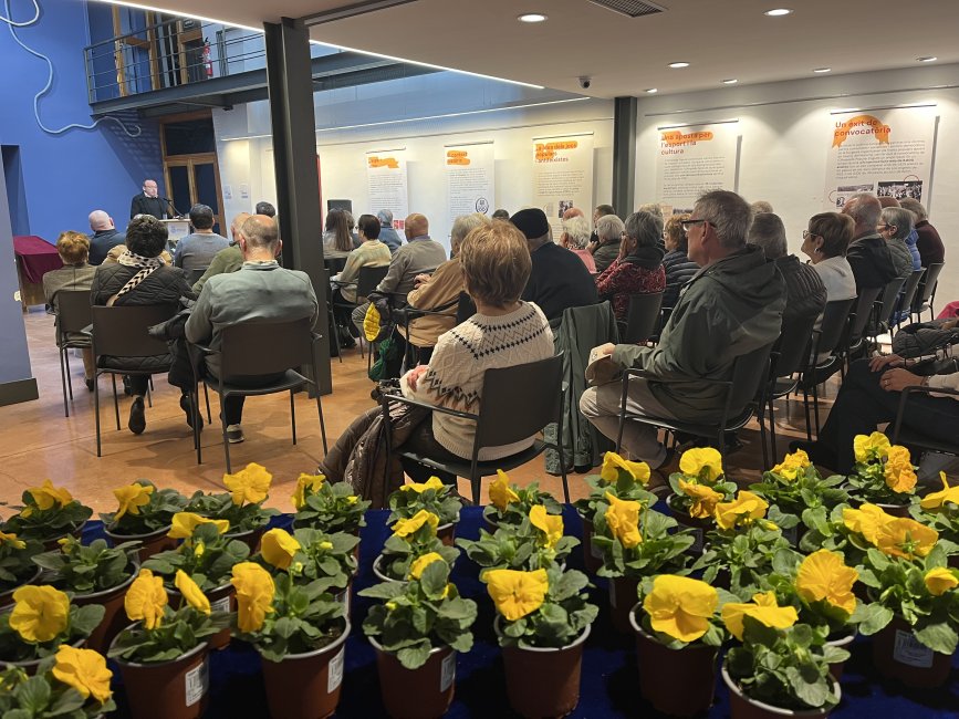 La sala d'exposicions de Can Costa va acollir aquest dissabte al matí l'acte anual de memòria democràtica. Aquest any, s'ha posat l'accent en el pas del franquisme a la democràcia, coincidint amb els 50 anys de la mort de Franco, i es va tenir un record especial per al Casino, que va ser un baluard de cultura, i la figura del Dr. Escarda.
